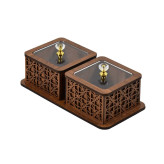 مجموعه فوق دارای دو عدد قندان و یک عدد سینی می باشد. - قندان ها از سینی جدا هستند و می توان تکی هم استفاده شوند. - اندازه قندان چوبی فوق ۱۰ در ۱۰ سانتی متر و ارتفاع ۷ سانتی متر می باشد. - کالای فوق از جنس ام دی اف دو طرف روکش دار ساخته شده است. - قابل استفاده برای قند و شکلات و ... می باشد. - از ام دی اف سه میلی دو لایه ساخته شده است. - ضخامت قندان ۶ میلی متر می باشد که دارای مقاومت بالایی در مقابل شکستگی می باشد. - درب قندان فوق از جنس پلکسی خارجی با کیفیت و شفافیت بالا و ضخامت دو میلی متری ساخته شده است. - دستگیره قندان فوق از جنس پلاستیک کریستالی با کیفیت و رنگ ثابت می باشد. - بهترین کادو برای عزیزانتان می باشد. - هنگام خرید به تمامی مشخصات طبق توضیحات دقت شود.
