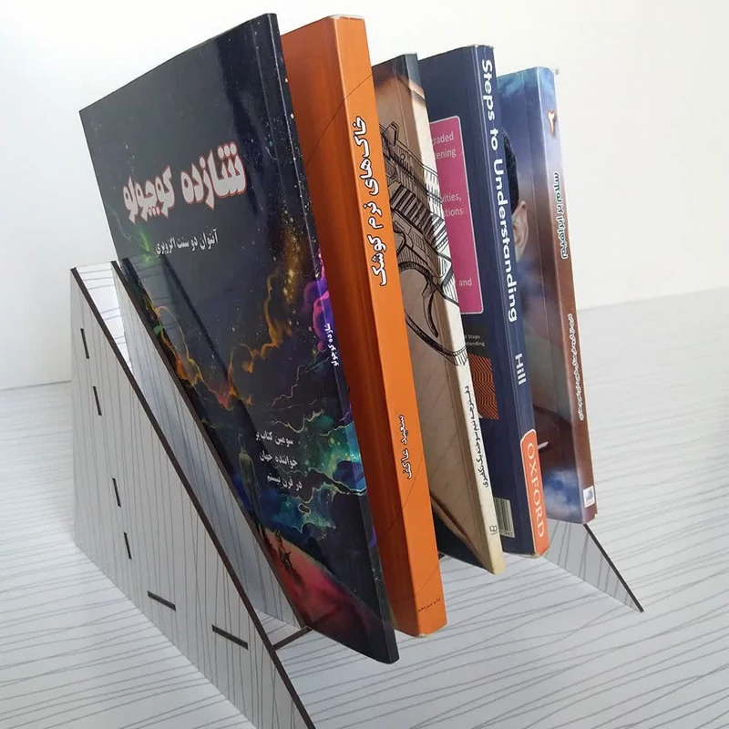 استند رومیزی کتاب مناسب برای استفاده های رومیزی در اتاق های شخصی و مطب ها و ادارات برای ساماندهی و استفاده هرچه بیشتر از فضای میز و زیبایی در چیدمان کتاب ها می باشد. این استند با تقسیم به 10 قسمت مجزا موجب می شود تا تعداد زیادی کتاب را در اندازه های مختلف (ترجیاحا سایز های کوچک و متوسط کتاب) را در خود جای داده وزیبایی چشم نواز را به اتاق و محیط بدهد همچنین این استند با نحوه ی قرار گیری صحیح کتاب موجب جلوگیری از خراب شدگی کتاب شود و این عامل به خصوص در فضاهایی که کتاب ها به صورت عمومی استفاده می شود بسیار مناسب تر می باشد همچنین مد نظر باشد که محصول جهت اطمینان از سالم ماندن در ارسال بدون مونتاژ ارسال می شود و البته همراه با چسب یدکی جهت مونتاژ و همچنین فایل راهنمایی و پشتیبانی کامل جهت سهولت در مونتاژ ارسال میشه