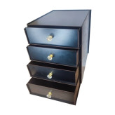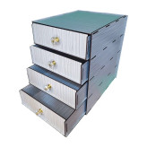 باکس نظم دهنده داخل کمد چوبی محصول نظم دهنده داخل کمد با بهر بردن از 4 ردیف کشویی با اندازه مناسب باعث شده است تا یک محصول مناسب برای نظم دادن به داخل کمد بوده و برای محیط های مختلف اعم از اتاق خواب و اتاق مطالعه و برای استفاده رومیزی و داخل کمد مناسب باشد. جنس محصول از چوب ام دی اف با ضخامت 3 میلی متر تولید می شود که این مطلب باعث می شود تا مقاومت مطلوبی داشته باشد و برا استفاده طولانی مدت پاسخگو نیاز باشد. مزیت دیگر محصول اندازه کلی محصول است که برای اکثر کمد های مورد استفاده در اتاق خواب و آشپزخانه و به صورت رومیزی برای مصارف گوناگون پاسخگو خواهد بود. اندازه داخلی هر کشو به طول 27 سانتی متر و عرض 21 سانتی متر و ارتفاع 9 سانتی متر بوده و اندازه کلی باکس نظم دهنده 40 سانتی متر ارتفاع و 25 سانتی متر عرض و 28 سانتی متر طول می باشد.