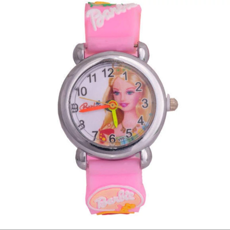 ساعت مچی دخترانه باربی با بند طرح دار و جعبه کادویی