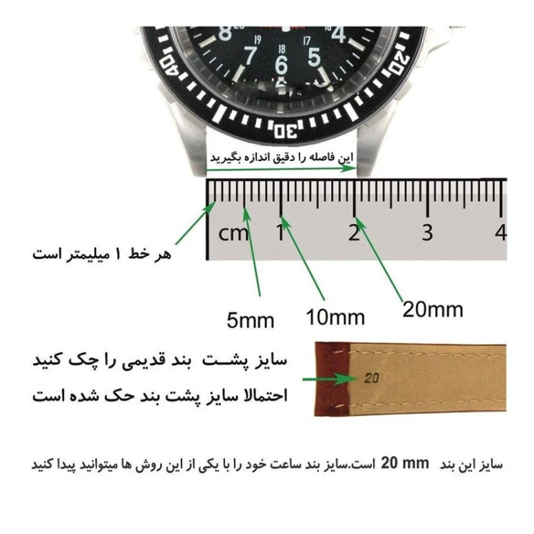 بند ساعت مچی چرمی سایز های متنوع و همراه با میله