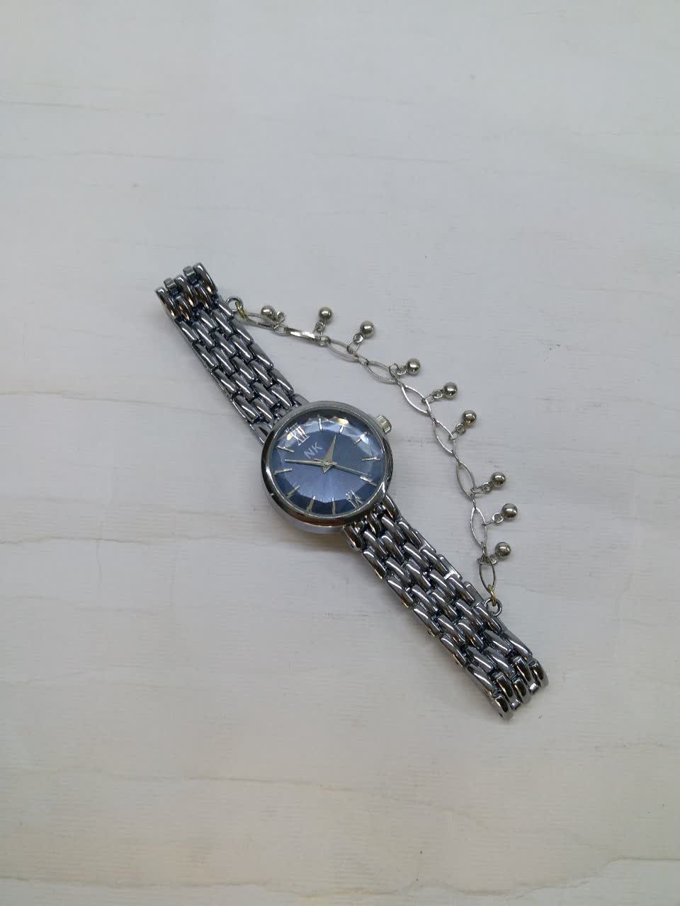 ساعت مچی زنانه نگین دار NK همراه با آویز ساعت