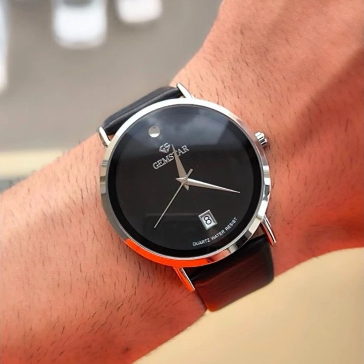 ساعت مچی مردانه عقربه ایی بند چرم ضدآب GEMSTAR