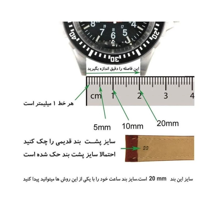 جنس چرم و با کیفیت مناسب جنس نرم با ماندگاری بالا مناسب برای طرح های مختلف ساعت مچی در سایز های 12,14,16,18,20,22,24 میلیمتر برای نحوه ی اندازه گیری اندازه مورد نیاز ساعت تصاویر را ورق بزنید همراه با میله مورد نیاز برای ساعت