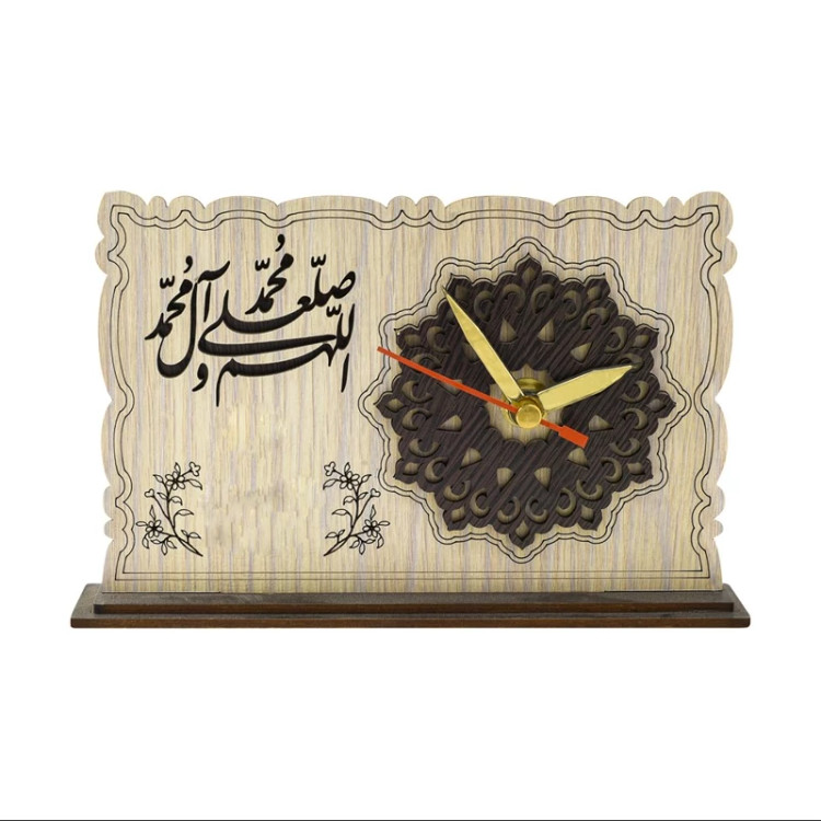 به غرفه ی برتر در تمام ماه ها با هزاران فروش و رضایت مشتری خوش آمدید. ساعت رومیزی تولید شده از چوب ام دی اف سه میل همراه با موتور روان و بی صدا با کیفیت مناسب که باعث می شود در عین زیبایی بسیار کارآمد نیز باشد. محصول در خرید تکی طبق تصویر اول که طرح صلوات است ارسال می شود و در صورت درخواست تعداد بالا قابل تولید به صورت سفارشی و هماهنگ شده در طرح های صلوات و اباصالح و حسین همراه با ثبت نام ارگان یا اداره یا مجموعه می باشد و البته قیمت تعداد پایین تر خواهد بود. ارسال محصول در کوتاه ترین زمان از طریق پست پیشتاز به سراسر کشور می باشد. ضمانت 7 روزه مرجوعی نیز از قابلیت های دیگر این محصول می باشد.