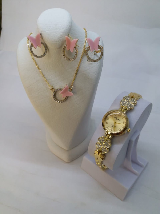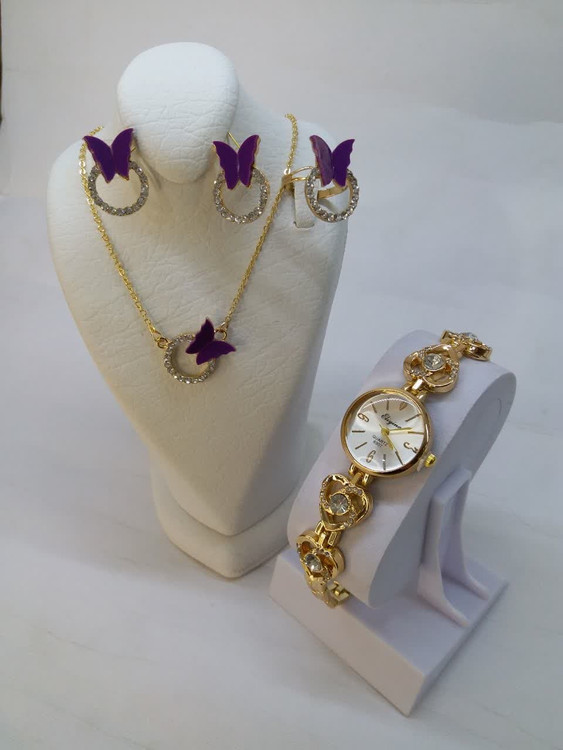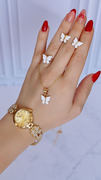 ست کامل و ساعت مچی زنانه و دخترانه الینا طرح پروانه