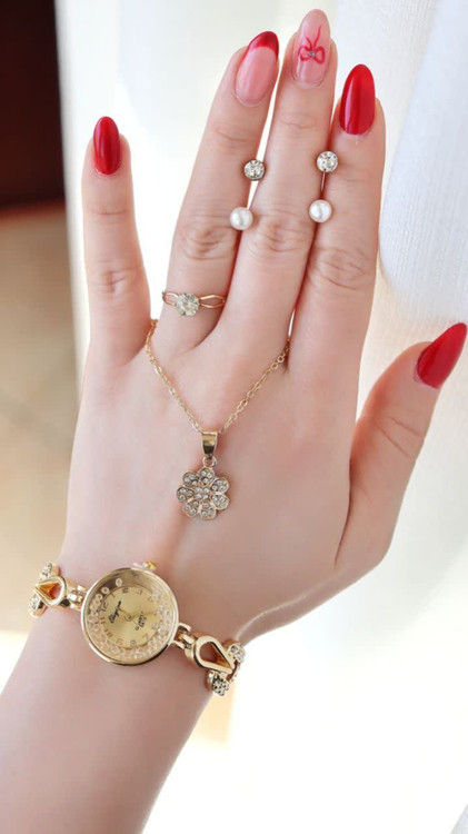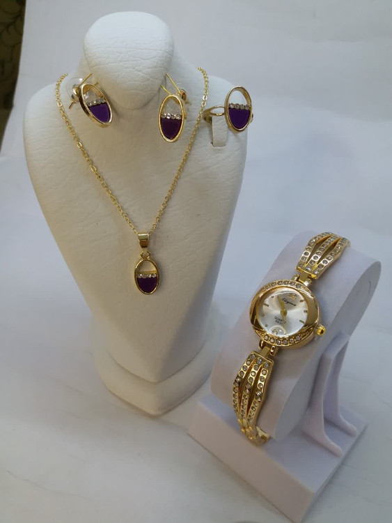 ست کامل و ساعت مچی زنانه و دخترانه الینا طرح نگین